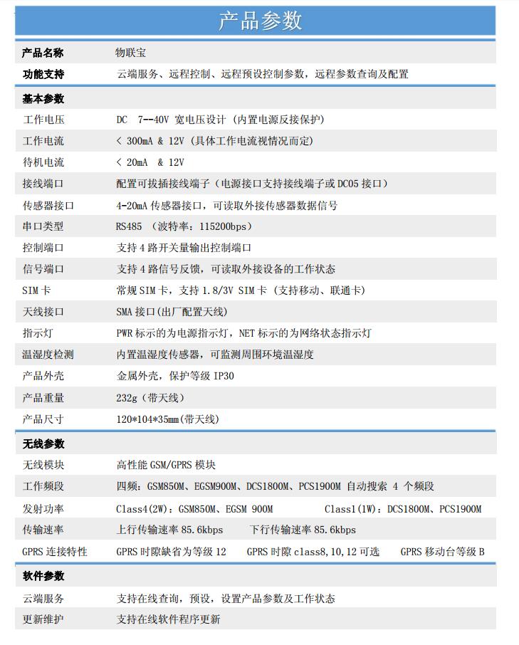 产品搭配高性能工业级GSM/GPRS模块,用于数据的发送与接收,支持普通移动、联通SIM物联卡,网络覆盖性广,具有信号稳定,低功耗等特点。