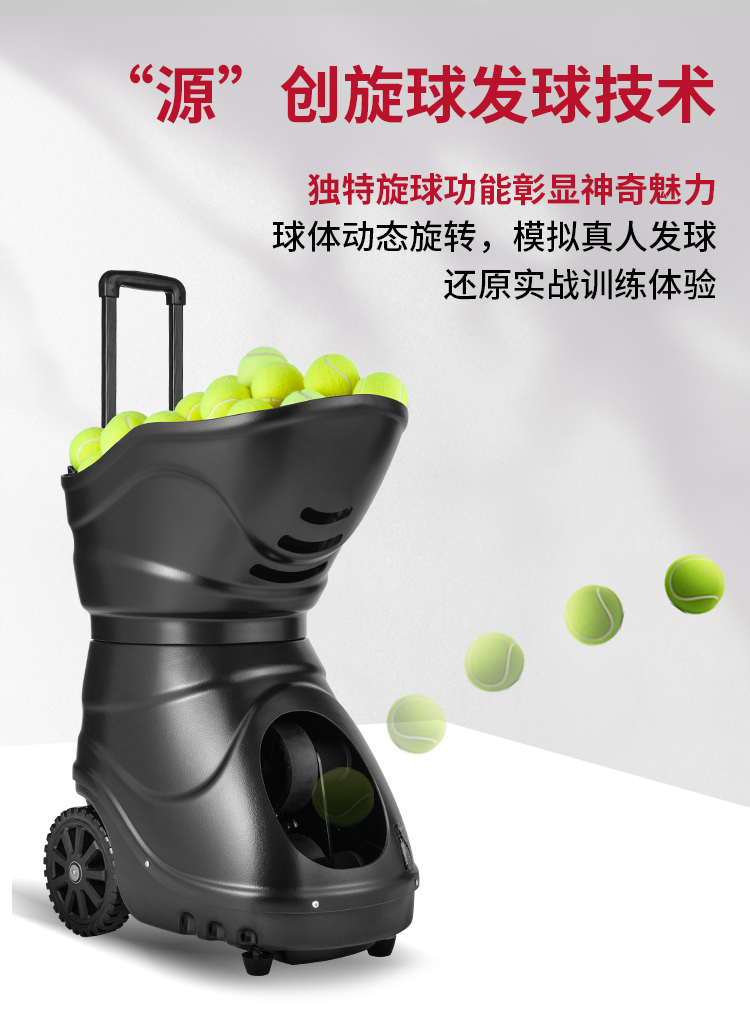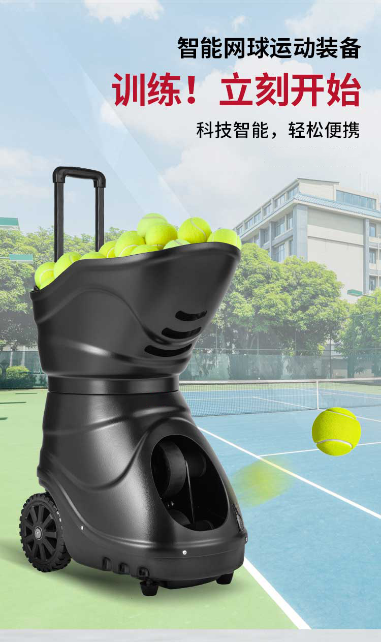 网球发球机是打网球时自动发球的机器,主流的网球发球机是靠两个轮子的相对旋转时挤压网球将网球打出。微信公众号或APP软件进入程序后,扫码开机。软件控制发球机的开机、关机、扣费。
